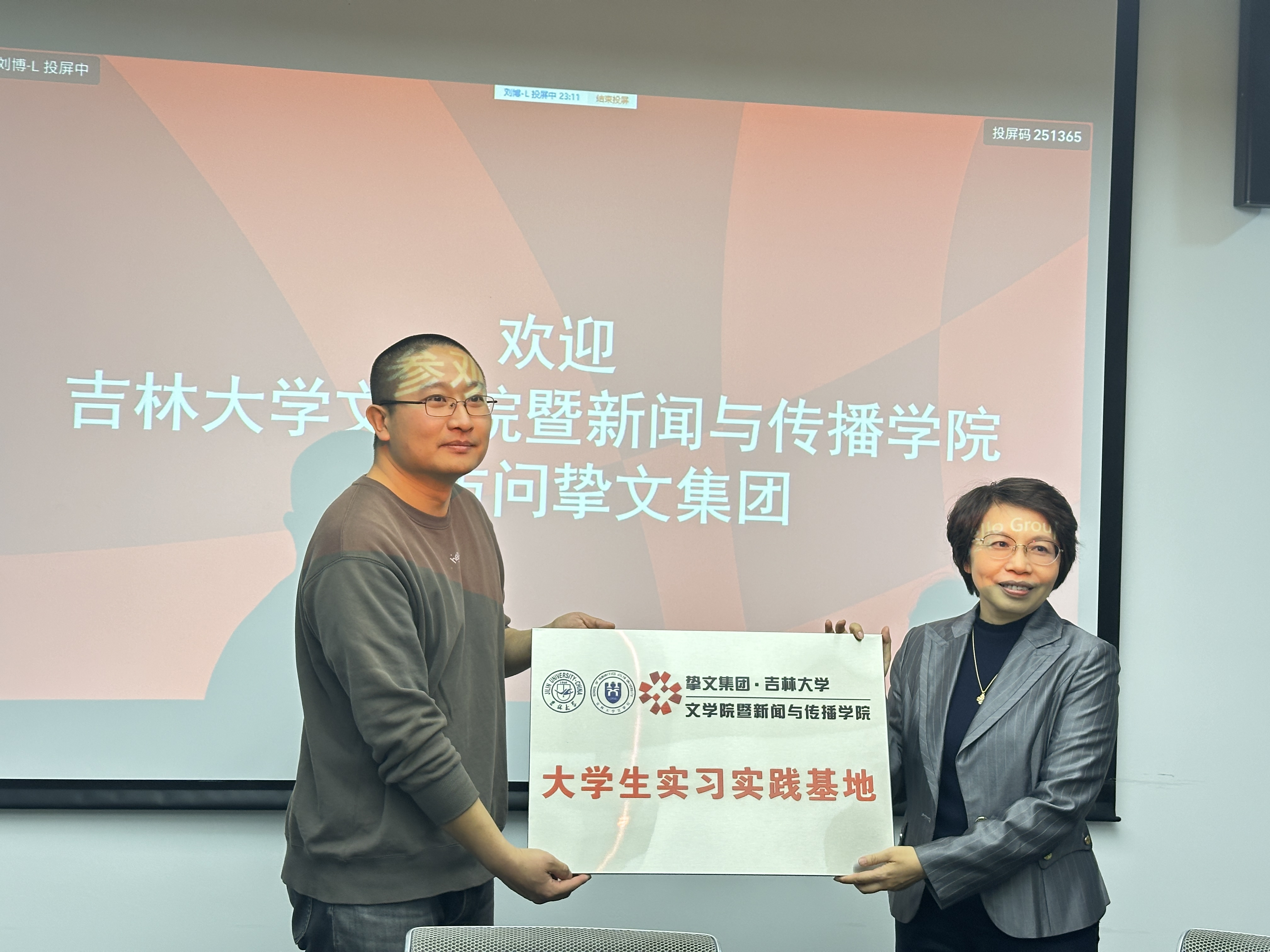 座谈会上,挚文集团人力资源副总裁王小薇代表集团对吉林大学一行表示热烈欢迎,并介绍了集团的人才培养理念,期待通过校企联动,为文化与传播行业输送兼具理论素养与实践能力的复合型人才。公共事务副总裁朱孟乐主持会议,详细介绍了集团发展历程、业务布局及近年来的校园招聘成果。