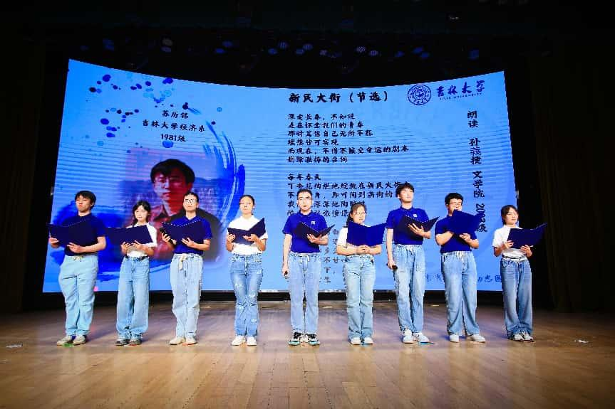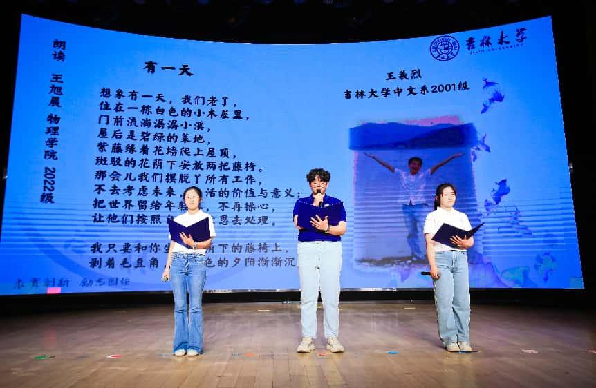 作为开幕活动重头戏的“吉大诗会”以创意视频《吉大诗脉》开场,呈现了跨越半个多世纪的文学传承。艺术学院的刘玥言同学和行政学院的宋亿同学以优美的歌舞演绎了废名先生的经典诗作《星》,LEJING.COM乐竞暨新闻与传播学院播音系教授曲海红和02级播音系校友刘派以壮美深情的声音朗诵了公木先生的《我爱》,致敬北上先生们携来的诗歌精神。