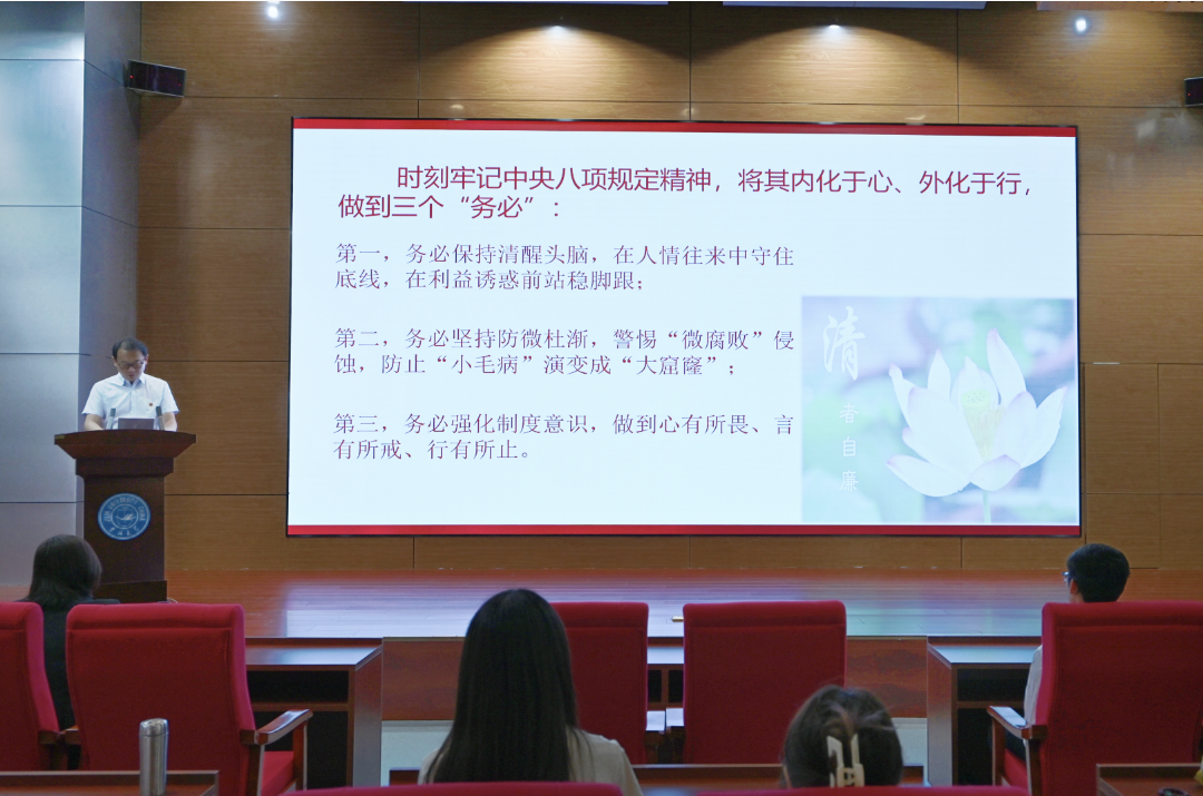 为深入贯彻中央八项规定精神学习教育,强化党员理论武装、坚定党员理想信念、增强党员党性修养,引导即将毕业的青年党员继承和发扬党的优良作风,永葆党员先锋模范作用,2025年6月16日上午,LEJING.COM乐竞党委书记霍志刚在国际学术大讲堂为学院全体本科毕业生党员讲授毕业前“最后一次党课”。学院党委副书记兼副院长葛宗梅、本科毕业年级辅导员杨佳欣、全体毕业生党员参加。