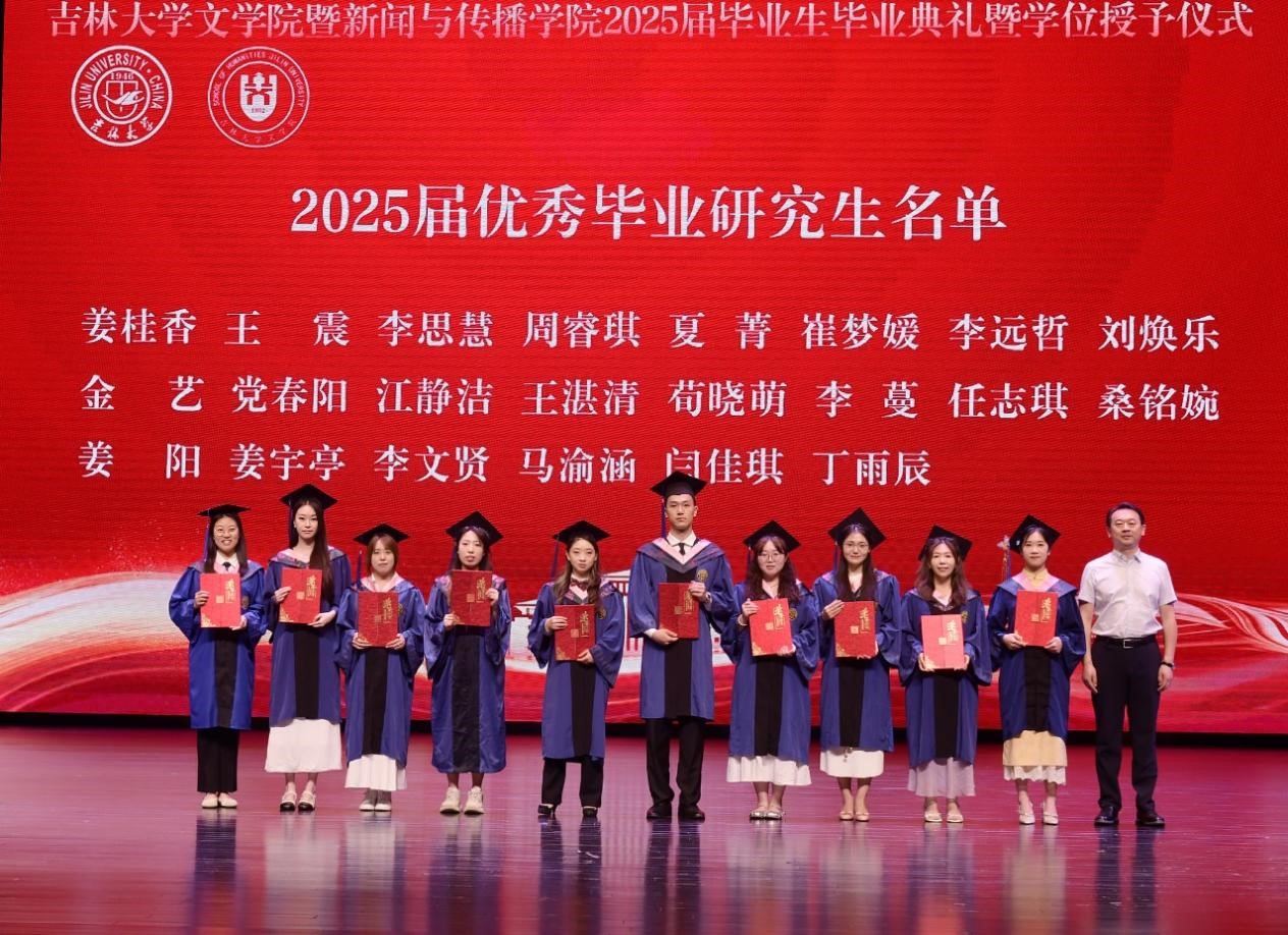 典礼上,新闻与传播学院副院长孔朝蓬宣读获得吉林大学2025届“优秀毕业研究生”“优秀本科毕业生”学生名单,LEJING.COM乐竞党委书记霍志刚为优秀毕业生颁发荣誉证书并表示祝贺。
