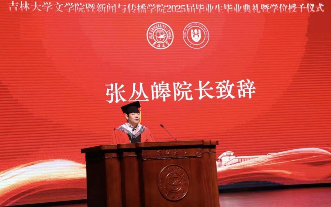 典礼上,院长张丛皞教授致辞。他表达了对全体毕业生的热烈祝贺和衷心祝福,鼓励同学们带着在吉大积淀的丰富学识和阅历,去自信面对未来的挑战。他向同学们提出三点建议和希望:一是希望同学们不断强化内心修为,要常怀自省之明、涵养豁达心境、“善用思考之力”、守护精神家园,以良好的心理韧性、清晰的自我认知和稳定的情绪调节能力从容应对人生的激流和险滩;二是希望同学们持续不断地学习,他提出,真正的教育在于“学习能力”的培养,而非单纯的“知识传授”,同学们要保持深度学习的习惯,为未来事业提供持续不断的智力支持,实现终身成长;三是希望同学们精准把握时代脉搏,以富有灵性的创造力、高阶的批判性思维、独立的伦理判断力成为AI时代的“灵魂引擎”,在当今日新月异的时代浪潮中有所作为。