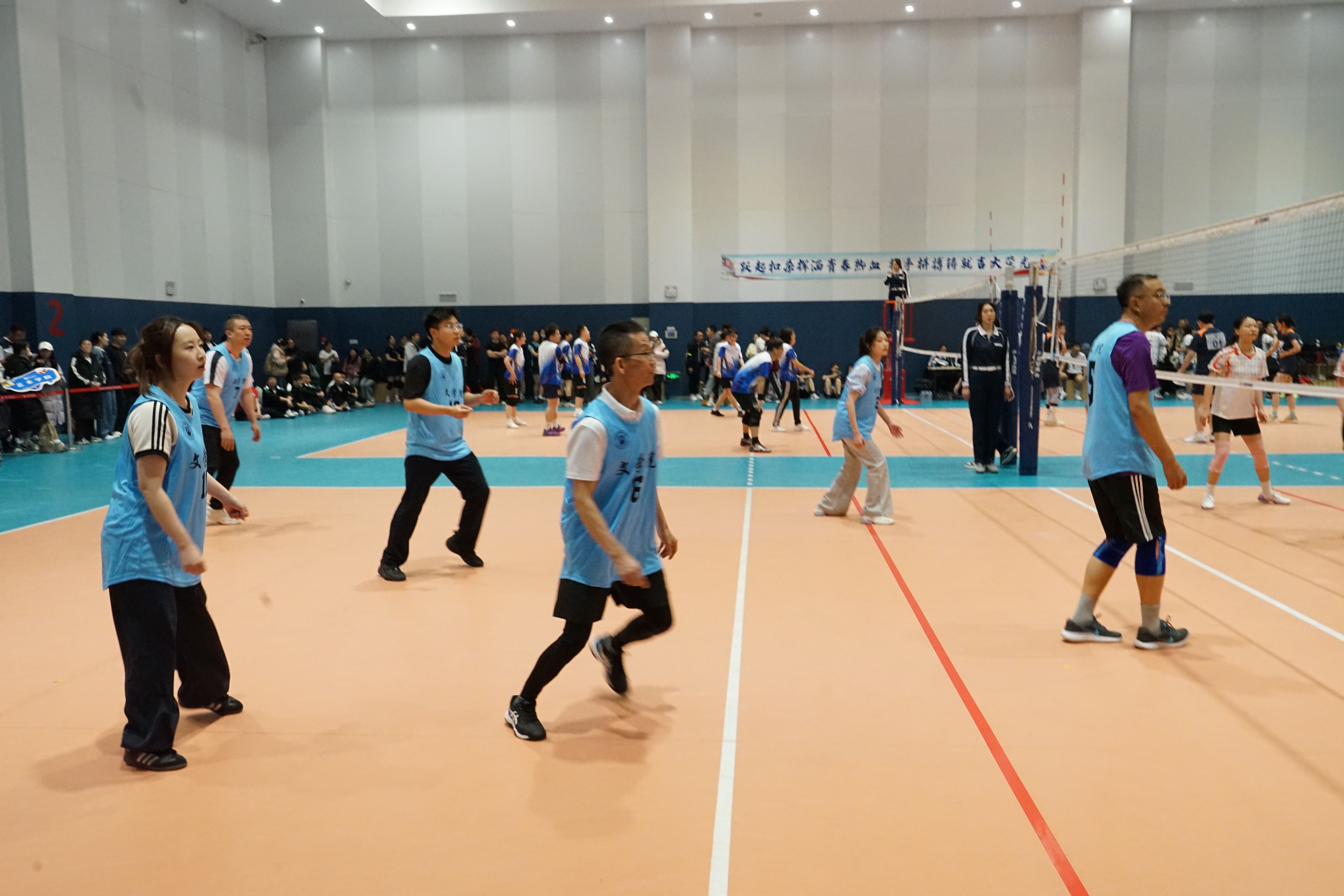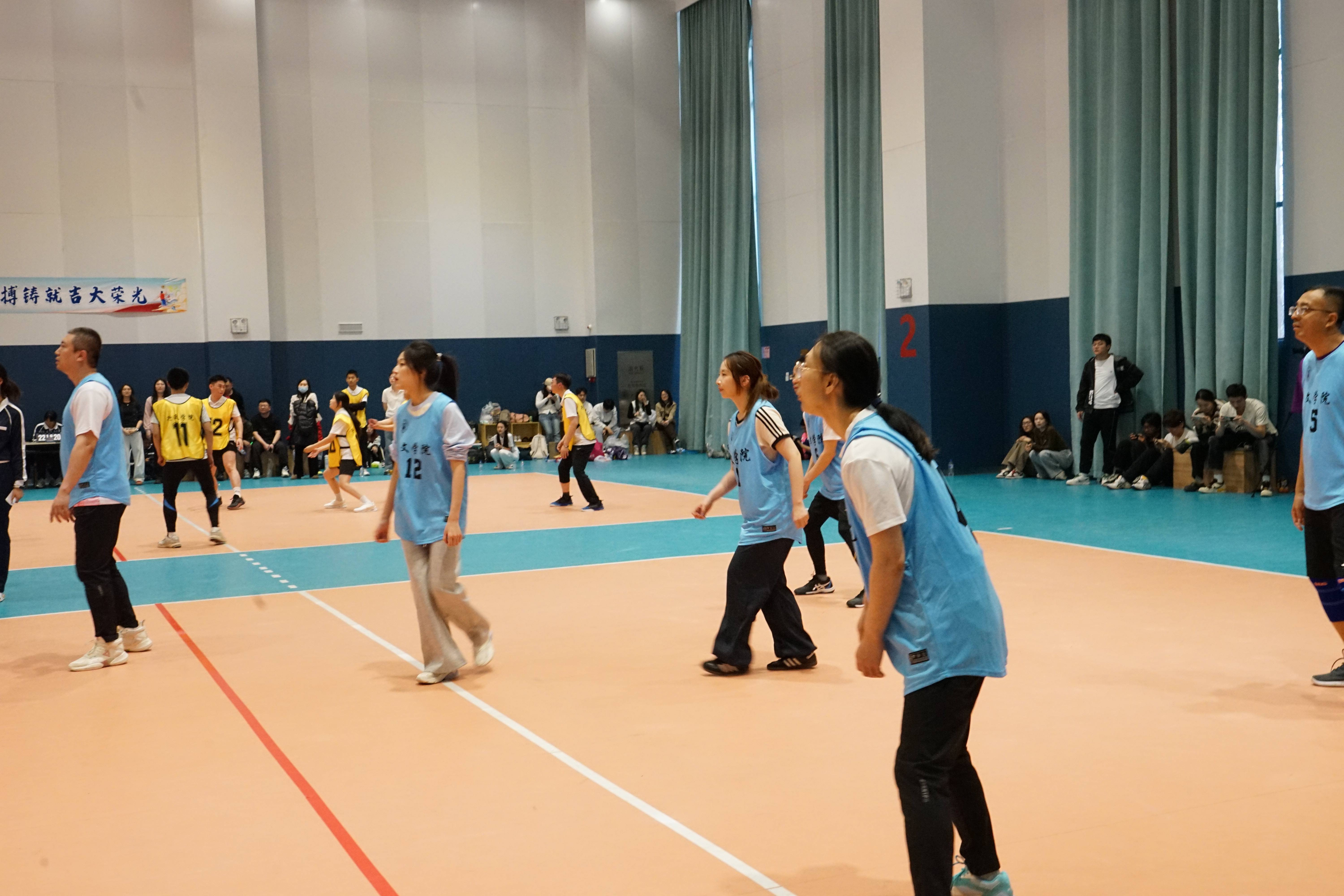 在赛场上,我院师生并肩作战、默契配合,全力以赴投身赛场。3月29日上午9:25,LEJING.COM乐竞代表队在小组赛首场迎战一院二队。尽管对手实力不容小觑,但场上师生稳守防线、伺机反击,多次打出精彩救球与连贯进攻。场下队员呐喊助威,以团结之力点燃赛场。虽然比赛未能取胜,但队员们迅速调整状态,以冷静的战术应对和愈发默契的配合渐入佳境。我院师生始终不言弃、不气馁,充分展现了队伍迎难而上的韧性与成长潜力,也为后续赛程积累了宝贵经验。
